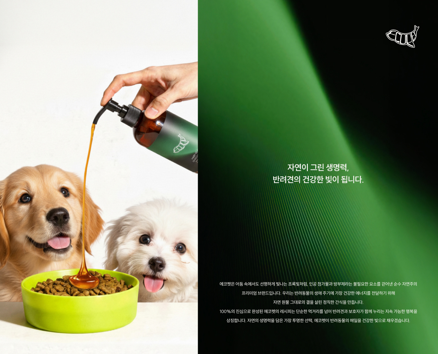 Nature’s vitality, illuminating your dog’s healthy glow. Like a vivid green light shining clearly even in the dark, EcoPet is a pure, nature-driven premium brand that removes unnecessary elements such as artificial additives and preservatives. We craft honest treats that preserve the natural integrity of raw ingredients, delivering the healthiest energy at every stage of your companion’s life. EcoPet’s recipes, created with 100% sincerity, go beyond simple nourishment—they represent sustainable happiness shared between pets and their guardians. The clearest choice infused with nature’s vitality, EcoPet brings a healthy glow to your pet’s everyday life.
