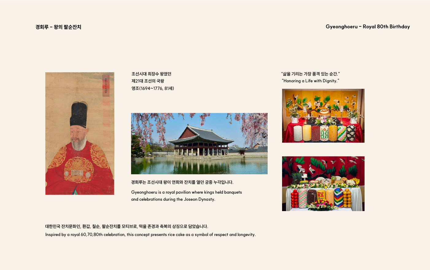Our traditional rice cakes are more than a treat—they are a cultural vessel containing the essence of Korean life. Inspired by the silhouettes of traditional architecture and the storytelling of pop-up books, our packaging breathes life into the sacred role of rice cakes in Korea’s most cherished ceremonies. We invite the global market to experience more than just a flavor; we offer a cultural journey through emotional packaging that redefines the value of K-dessert.
